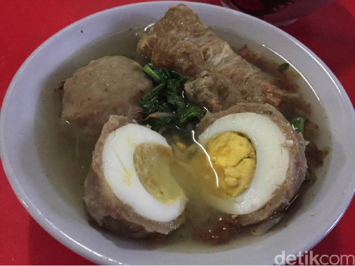Satu porsi bakso berisi tiga buah bakso, mi kuning dan bakso goreng. Ukuran baksonya tidak terlalu besar, tapi rasa baksonya memang enak sekali.