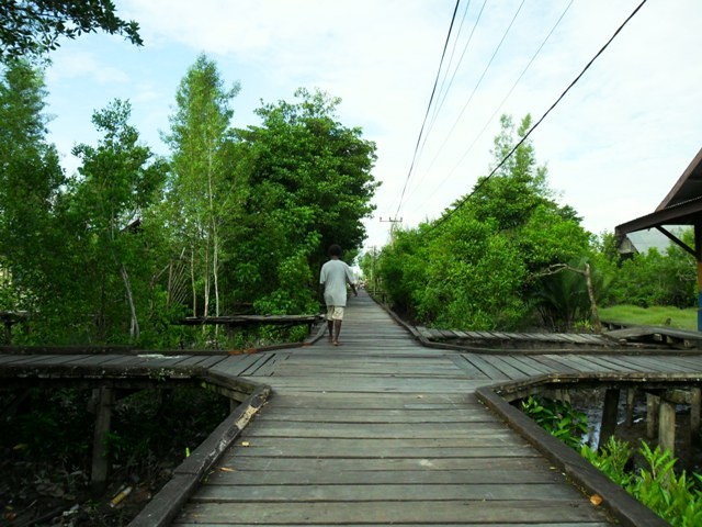 Kami berjalan melalui jalan seperti jembatan dari kayu besi selebar dua meter. Seperti itulah kondisi jalan-jalan di Agats. Jalan yang berupa jembatan kayu tersebut menjadi penghubung antara satu tempat dengan tempat lainnya. Ini terjadi lantaran Agats, berdiri di atas rawa-rawa. Ketika berjalan menuju rumah makan, kami dikejutkan dengan lalu lalang kendaraan bermotor berupa motor listrik dan sepeda. Hanya kedua jenis kendaraan itu saja yang boleh digunakan di Agats.Β