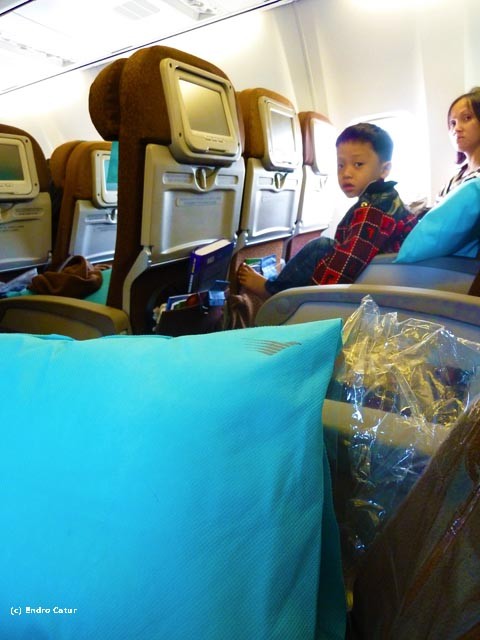 PAPUA - Papua. Yang pertama kali terpikirkan setelah saya mendapatkan kabar bahwa saya terpilih untuk tim menuju Papua adalah JAUH. Ya, perjalanan selama kurang lebih tujuh jam sepertinya agak terasa melelahkan.Pada saat hari H keberangkatan, tentunya saya sudah bersiap-siap segala sesuatunya agar perjalanan panjang tersebut tidak membosankan. Saya menyiapkan MP3 Player, laptop, dan buku bacaan.Namun, semuanya terasa berbeda setelah saya duduk di dalam pesawat Garuda Indonesia. Sekarang, Garuda Indonesia telah melengkapi pelayanannya dengan menambahkan LCD touch screen. Fitur-fiturnya pun keren sekali. Mulai dari film, video klip, hingga game, yang membuat saya lupa akan lamanya perjalanan dan tidak terasa membosankan sama sekali. Baiklah, mungkin saya mendeskripsikannya seolah-olah baru pertama kali naik pesawat dan terkesan kampungan. Tetapi memang fasilitas ini sangat membantu sekali untuk saya yang merupakan tipe penumpang yang jarang bisa tertidur dan mudah bosan.Tidak hanya itu, setelah saya menyelesaikan perjalanan saya ke Papua dan kembali ke Yogyakarta, sebelumnya saya sempat transit di Jakarta. Jarak waktu tiba di Jakarta dengan penerbangan selanjutnya ke Yogyakarta adalah sekitar tujuh jam. Dengan kondisi Jakarta yang macet, saya mengurungkan niat untuk pergi berjalan-jalan sembari menunggu waktu penerbangan selanjutnya.Setelah mengambil bagasi di Soe-ta, saya bertanya kepada salah satu kru Garuda Indonesia dan menanyakan apakah penerbangan saya bisa dimajukan waktunya, sehingga saya tidak harus menunggu tujuh jam untuk penerbangan selanjutnya. Pelayanan yang sangat mengagumkan karena semua kebutuhan administrasi pemajuan jadwal diurus oleh kru tersebut. Bahkan saya diantarkan ke kasir, check in, hingga ke ruang tunggu pun saya di dampingi. Wow! Selain itu, tidak dikenakan biaya tambahan untuk pergantian jadwal.Yang bisa saya ucapkan adalah terima kasih. Terima Kasih untuk Garuda Indonesia dan terima kasih untuk Pak Tarno (Kru Garuda Indonesia) yang telah dengan setia mengurus segala kebutuhan saya.