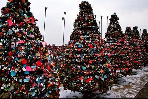 Meskipun sejauh mata memandang yang terlihat hanyalah pagar dengan gembok yang penuh, Anda tidak akan bosan untuk melihatnya. Ini karena gembok yang dipasang beraneka warna, ukuran, dan bentuk. Sangat cantik untuk dilihat dan diabadikan lewat kamera Anda.