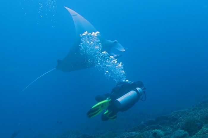 Perairan di sekitar Gili Trawangan menawarkan keindahan alam bawah laut yang tak habis dipandang mata. Manta point terletak di sebelah selatan pulau ini. Namun, Anda perlu memiliki diving license untuk menyelam bersama ikan pari.