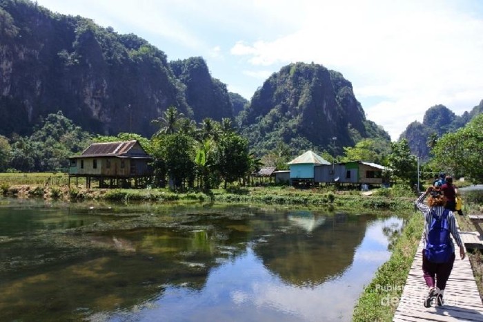 Jakarta - Mungkin traveler sudah pernah dengar tentang Rammang-rammang. Selain punya goa berlian, tempat ini menjadi karst terbesar Indonesia lho!Perjalanan ke Rammang-rammang saya lakukan karena memiliki waktu beberapa jam transit di Makassar. Saya dan 3 teman baru yang saya temui di Makassar memutuskan untuk rental mobil dan pergi ke Rammang-rammang.Rammang-rammang dalam bahasa Makassar memiliki arti sekumpulan awan atau kabut. Dinamai demikian karena seringnya tempat tersebut ditutupi kabut atau awan. Dimana hampir semua tempat tertutup oleh awan atau kabut.Menempuh perjalanan sekitar 2 jam dari Bandara, kami pun tiba di pintu masuk wisata Rammang-rammang. Untuk eksplor tempat ini pengunjung perlu sewa klotok, kami membayar 200ribu untuk 4 orang.Sebenarnya ada beberapa lokasi yang bisa dieksplor di sini, berhubung waktu yang terbatas, maka atas saran teman saya yang sudah pernah ke sini. Kami memutuskan untuk eksplor Desa Berua saja.Sepanjang naik klotok, saya dibuat takjub oleh pemandangan yang ada. Usut punya usut ternyata rammang-rammang katanya adalah tempat karst terbesar ketiga di dunia setelah China Selatan dan Vietnam. Pantas saja indah banget.Tidak lama, klotok kami menepi, pertanda kami sudah sampai di Desa Berua. Membayar tiket sebesar 5000 ribu rupiah, kamipun mulai menyusuri desa ini.Begitu memasuki desa Berua, hal pertama yang ada di pikiran saya adalah "Woww, ada view beginian ternyata di Indonesia". Serius seindah dan semegah itu sih tempatnya.Desa Berua ini cukup luas dan memiliki spot yang cukup beragam. Ada bebatuan besar yang disebut karst, lalu ada sawah hijau membentang, kolam bekas sawah yang berair jernih, goa yang indah serta tebing menjulang tinggi. Bisa dibilang tempat ini komplit deh.Haus setelah mengelilingi desa, para pengunjung bisa banget minum air kelapa yang dijajakan di beberapa spot. Menikmati kelapa sambil melihat sekeliling serasa damai sekali.Tidak terasa waktu semakin sore, saya dan ketiga teman harus segera kembali ke bandara. Wah lumayan banget jadi alternatif daripada bosan nunggu di Bandara. Enggak terasa udah harus terbang lagi aja. Jadi kalau d'traveler harus transit lama di Makassar, wajib banget mampir ke sini.
