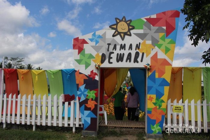 Jakarta - Akhir pekan di Magelang bisa dihabiskan dibeberapa tempat menarik. Salah satunya Taman Dewari yang penuh dengan kincir angin warna-warni.Ya di Taman Dewari ini sekarang dihiasi kitiran atau kincir angin warna-warni. Meski isinya sudah berbeda suasana tetap indah dan menarik untuk dikunjungi.Dengan membayar Rp 10.000 per orang, kita bisa menikmati taman ini. Bagian depan taman nampak menarik dengan tulisan besar Taman Dewari berpagar putih dan hiasan kain aneka warna menarik perhatian .Begitu masuk ke bagian dalam taman kita langsung disambut dengan hamparan kitiran warna-warni. Ada topi atau caping yang tersedia yang bisa digunakan pengunjung untuk menghindari panasnya matahari tetapi jumlahnya tidak terlalu banyak. Saat angin berhembus cukup kencang, kitiran akan berputar bersamaan dan hal ini menciptakan pemandangan luar biasa. Pengunjung akan terpesona melihat gerakan kitiran. Warna tertentu diatur dalam barisan sehingga membentuk perpaduan yang indah.Pengunjung dapat berjalan-jalan di antara kitiran dan melihat dari dekat kitiran yang ada. Berfoto di tempat ini tidak perlu mencari spot, karena semua bagian taman tampak menarik untuk diabadikan. Di bagian belakang taman juga terdapat kitiran berukuran besar, sementara di bagian lain terdapat panggung dari bambu sehingga pengunjung dapat naik dan melihat pemandangan lautan kitiran dari atas. Spot foto lain juga disediakan seperti latar belakang berbentuk perahu dan rumah-rumahan dengan dinding warna-warni.Saat lelah, di taman ini terdapat bale bambu beratap yang bisa digunakan pengunjung untuk beristirahat. Toilet juga tersedia, begitu juga dengan warung makanan dan minuman. Aroma gorengan tercium dari tempat kami duduk-duduk.Waktu yang tepat saat mengunjungi tempat ini adalah pagi dan sore hari , di mana matahari tidak terlalu terik. Sehingga kita dapat menikmati tempat ini dengan nyaman. Pengunjung pada siang itu tidak terlalu ramai, hanya ada satu keluarga yang datang dari sekitar taman serta beberapa kelompok anak muda dengan kostum lengkap siap berfoto.Taman dewari cukup luas sehingga pengunjung dapat menikmati taman dengan leluasa, hanya karena lokasinya yang berada di antara persawahan dengan jalan yang tidak terlalu lebar maka pada saat ramai pengunjung harus parkir agak jauh.