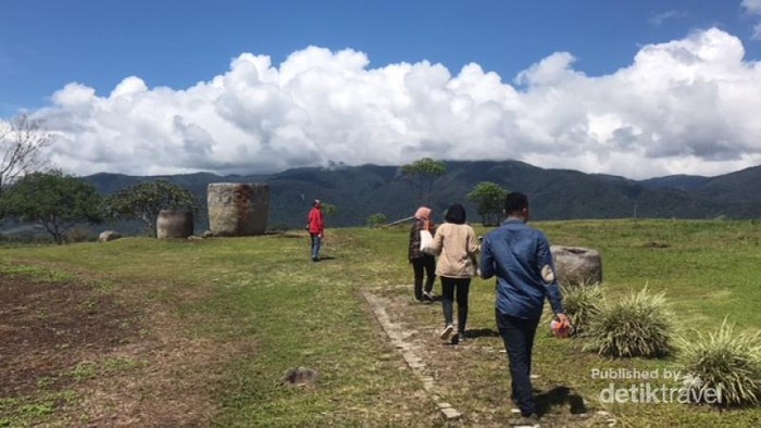 Jakarta - Mencari salah satu peradaban tertua di Indonesia? Kunjungilah situs Megalitikum yang ada di Kabupaten Poso.Perjalanan kali ini adalah mengunjungi situs Megalitikum yang ada di Kabupaten Poso. Tujuan kami melihat situs peninggalan bersejarah megalitikum karena katanya termasuk situs sejarah yang unik dan hanya ada 2 di dunia, mirip dengan yang ada di Pulau Paskah di Samudera di Pasifik, dan satu lagi karena situs ini berada di kawasan Taman Nasional Lore Lindu yang merupakan habitat Anoa Sulawesi.Jadi berharap sekali bisa melihat langsung Anoa yang merupakan hewan endemik dan langka asli Sulawesi. Saat ini ada sekitar 432 obyek situs megalit yang ada di Sulawesi Tengah menurut Dinas Pariwisata Provinsi Sulawesi Tengah dan 1.451 jumlah batuannya yang tersebar di beberapa kabupaten.Perjalanan menuju situs Megalitikum Poso ini termasuk cukup ekstrem, karena jalan menuju ke sana belum semuanya beraspal. Jadi dibutuhkan kendaraan yang sesuai, belum lagi kalau dalam perjalanan atau sehari sebelumnya hujan. Kami berangkat dari Kota Palu menuju Lembah Besoa yang berada di Lore Tengah. Perjalanan memakan waktu hingga 5 hingga 6 jam. Cukup lama memang, tetapi pemandangan yang ditawarkan Lembah Besoa tidak mengecewakan.Perpaduan padang rumput yang hijau, langit biru dan awan putih menggumpal, sangat memanjakan mata, belum lagi ditambah dengan gugusan batu megalit yang memiliki bentuk yang unik, benar-benar eksotik! Tujuan pertama kami adalah Situs Pokekea, karena berdasarkan rekomendasi dari warga, di sini ada banyak batuan megalit yang tersebar. Sampai di tujuan, kami terpukau, pemandangan lembah yang indah dan banyak sekali batuan dengan desain yang unik.Salah satu batu megalit yang ada di sini adalah Kalamba. Kalamba merupakan artefak berbentuk tempayan besar bertutup berdiameter 1,5-2 meter, serta berbentuk tangki melingkar yang dipahat dari sebuah batu besar yang dahulu sepertinya digunakan untuk tempat penyimpanan. Mengenai apa yang disimpan didalamnya masih merupakan spekulasi. Bisa jadi tempayan ini dipakai untuk menyimpan air, barang-barang berharga, atau malah merupakan peti mati purbakala. Sebagian masih dalam kondisi utuh, dan sebagian lagi sudah rusak.Kalamba dapat ditemukan di beberapa tempat di Lembah Bada dan memiliki bentuk serta ukuran bervariasi. Beberapa memiliki satu lubang di tengahnya, sementara lainnya memiliki dua lubang. Menurut kepercayaan lokal, Kalamba digunakan sebagai bak berendam untuk para petinggi atau raja. Sementara yang lainnya menduga bahwa benda tersebut dulunya digunakan sebagai peti mati atau tangki air. Tutup terbuat dari batu sering ditemukan di dekat Kalamba, dan muncul dugaan bahwa benda tersebut digunakan untuk menutupi Kalamba sehingga tak mungkin digunakan sebagai bak berendam.Puluhan patung purbakala ini kabarnya sudah ada sejak abad ke-14. Batu megalit di Lembah Bada ditemukan pertama kali pada 1908. Walaupun penemuan tersebut sudah berlangsung lebih dari 100 tahun, namun hanya sedikit hal yang diketahui tentang objek itu, salah satunya tentang kapan patung batu itu dibuat. Beberapa orang berspekulasi bahwa batu-batu tersebut dipahat sekitar 5.000 tahun lalu, sedangkan lainnya menduga megalit itu dibuat sekitar 1.000 tahun silam.Setelah puas di Pokekea, kami melanjutkan perjalanan ke Situs Tadulako, untuk melihat batu megalit yang lain. Lokasi Tadulako juga tidak jauh dari situs Pokekea, hanya sekitar 10 menit. Yang menarik dalam perjalanan ke Tadulako, kami melihat ada rumah adat yang mulai hancur.Rumah yang berbentuk segi empat dengan atap piramida ini dilapisi oleh daun rumbia serta beberapa ijuk. Bagian bawah dari rumah ini disangga oleh kayu dan tidak memiliki dinding pelindung. Rumah yang memiliki nama Tambi ini digunakan oleh para bangsawan kerajaan. Mereka tinggal di sini untuk hidup dan berumah tangga. Rumah ini biasanya memiliki tanduk kerbau pada bagian atasnya untuk menandakan status sosial dari yang memiliki hunian. Semakin banyak atau besar tanduk kerbau, status mereka semakin tinggi.Di Situs Tadulako tidak banyak batu megalitnya, hanya ada satu patung berjenis kelamin laki-laki setinggi 2 meter dan beberapa kalamba di sekitarnya. Walaupun sendirian, patung Tadulako ini memiliki pemandangan yang luar biasa.Jadi kalau ke Kabupaten Poso, jangan lupa untuk mampir ke situs-situs megalit ini ya. Oh ya, yang paling penting, jangan meninggalkan jejak, baik sampah atau coretan di patungnya ya.