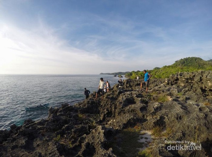 Jakarta - Pulau Bawean menawarkan destinasi wisata alam yang seru. Salah satunya, traveler bisa menjajal cliff jumping di Tanjung Ga'ang.Jalur menuju Tanjung Ga'ang ini pada mulanya beraspal cukup lebar membentang membelah persawahan hijau yang ada di Bawean ini. Beberapa menit jalur menyempit dan berubah menjadi paving block dan tak lama setelah itu jalur tanah mulai menghiasi sepanjang jalur.Kami berhenti dahulu untuk mampir ke salah satu rumah penduduk yang kebetulan mempunyai perahu yang biasa disewa orang orang yang ingin menuju Tanjung Ga'ang. Karena memang untuk menuju Tanjung Ga'ang ada 2 opsi.Yang pertama adalah memakai motor, karena jalur kesana sudah cukup jelas dan aman. Dan yang kedua bagi yang ingin melakukan Cliff Jumping di Tanjung Ga'ang harus menyewa sebuah perahu, karena memang akses ketika sudah terjun kebawah satu satunya hanya dengan perahu.Tebing-tebing karang tajam dan terjal tak mungkin kita daki untuk kembali ke atas bukit. Satu-satunya opsi yang cukup aman adalah adanya perahu yang siap menunggu di bawah tebing, dan setelah melakukan cliff jumping perahu tersebut akan mengantarkan kita menuju bibir pantai yang memungkinkan untuk perahu bersandar.Karena keadaan laut yang saat itu sedang surut mau tak mau hanya kapal berukuran kecil yang sanggup mengantarkan kami. Hanya 5 orang saja yang dapat dimuat, oleh karena itu kami hanya memilih orang yang benar-benar berhasrat dan punya keberanian untuk terjun cliff jumping di ujung tebing Tanjung Ga'ang.Akhirnya aku, Fita, Dika, dan Ujang saja yang akan menaiki perahu dari tepian kampung. Kawan-kawanku yang lain akan dipandu Mas Kaha menuju Tanjung Ga'ang menggunakan motor. Ombak memang tak begitu tinggi sore itu, namun tetap saja mampu membuat perahu kecil ini terombang ambing, sesekali ombak pecah ketika menghantap sisi depan dari perahu yang dibuat meruncing.Sedikit was was memang ketika menaiki perahu sekecil ini namun bayangan Tanjung Ga'ang yang ada di depan sana menjadi penyemangat tersendiri. Penasaran seperti apa yang namanya Tanjung Ga'ang.Air nampak berubah menjadi hijau toska begitu kapal mendekati Tanjung Ga'ang, air pun nampak sangat jernih sehingga karang karang cantik yang ada di bawah permukaan air dapat langsung kita lihat dari atas perahu.Karena memang air saat itu sedang surut, perahu yang kami tumpangi pun nampaknya tak sanggup untuk mendekat ke bibir pantai. Karena sebaran karang yang terlalu luas dan ditakutkan akan merusak karang-karang indah itu nantinya jika kami tetap memaksakan perahu untuk menuju bibir pantai.Dari bibir pantai ini perjalanan selanjutnya adalah harus melewati bukit bebatuan karang dengan batu batunya yang sangat tajam. Di jalur ini kita sangat dituntut untuk ekstra hati-hati dalam melangkah. Karena kontur bebatuannya yang tak rata ditambah dengan lubang-lubang yang siap membuat kaki bahkan tubuh kita terjatuh ke bawah.Suara ombak yang memecah karang pun terdengar seakan memberi salam kepada kami untuk segera bisa merasakan kesegarannya di bawah. Oleh karena itu aku, Dika, Fita, Ujang dan Priyo segera berjalan ke arah kiri menuju bongkahan batu besar yang menjorok langsung ke lautan lepas.Bak papan lompat di sebuah kolam renang, batu inipun menjadi tempat yang sempurna untuk para penantang adrenalin melampiaskan hasratnya. Dari kejauhan Mas Kaha pun mengacungkan jempolnya ke atas, memberi kode bahwa tempat ini memang tempat yang benar untuk melakukan cliff jumping.Begitu sampai di tepian tebing aliran darah mulai berdesir, tekad yang tadinya bulat perlahan runtuh begitu melihat tingginya jarak tebing dengan permukaan air laut di bawah sana. Keringat dingin pun menetes perlahan di kening.Bagaikan anak kecil bertemu tempat bermain, dan tanpa takut akhirnya Dika pun meloncat turun. Dengan kecepatan kencang dan hanya beberapa detik saja, byurrrr.. Dika pun masuk ke dalam air, sepersekian detik kemudian kepalanya muncul dan berseru kegirangan.Melihat Dika yang berhasil melompat ke dalam air dengan aman akhirnya keberanianku kembali muncul. Aku coba untuk melangkah menuju ujung tebing. Semilir angin lembut membelai tubuh ketika kaki sampai tepat di bibir tebing yang sudah tak berbatas.Tiba tiba kaki gemetar melihat betapa tingginya tempat ini. Aku hirup udara dan aku hembuskan pelan pelan sembari menguatkan tekad. Dan inilah waktunya, kaki aku sentakkan dengan kencang dan tiba tiba detak jantung seakan berhenti, rasa ngilu terasa di ubun-ubun kepala hingga akhirnya tubuhku menyentuh air. Byuuurr!Beberapa saat aku coba rasakan kedalaman hingga akhirnya kepala keluar menuju permukaan, menghirup udara, dan merasakan detak jantungku kembali berdetak. Adrenalin yang terpacu perlahan normal seperti adanya. Sungguh sensasi yang luar biasa.