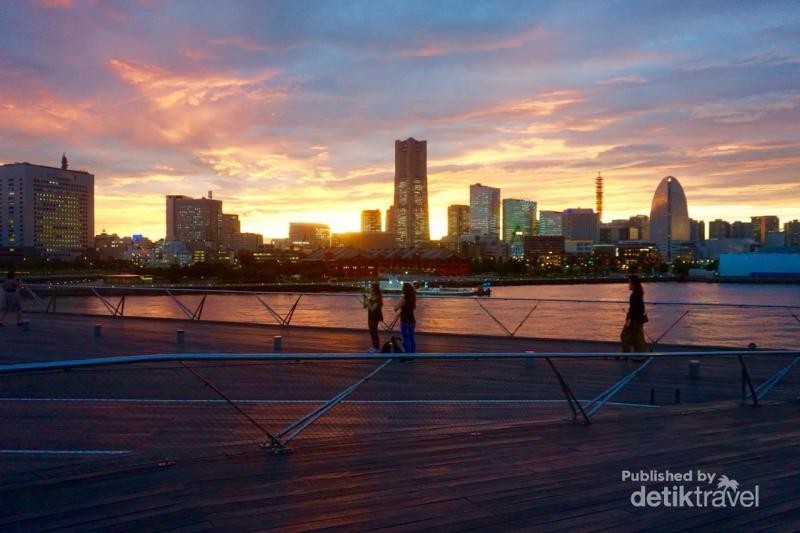 Saat Matahari Terbenam di Yokohama BAGIKAN URL telah disalin Sunset di Osanbashi Pier Red Brick Warehouse Pemandangan dari Osanbashi Pier Berjalan di Minato Mirai Area Nipponmaru and Port Museum