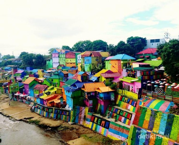 Jakarta - Kampung wisata kini mulai menjamur, Malang salah satunya. Tak hanya kampung warna-warna, Malang juga punya desa wisata lain yang tak kalah berwarna.Malang, sebagai salahΒ satu kota tujuan wisata di Indonesia semakin banyak bermunculan lokasi wisata baru. Baik wisata yang bersifat edukasi ataupun rekreasi. Setelah Kampung Warna-warni yang unik dengan beragam warna yang mencolok, ternyata di sekitarnya terdapat kampung-kampung lain dengan tema yang berbeda-beda.Kampung pertama yang kami lewati adalah Kampung Lampion. Kampung ini berdekatan dengan gang Kampung Warna-warni. Disebut Kampung Lampion karena di kampung ini memproduksi kerajinan lampion yang berwarna-warni. Selain dipajang lampion-lampion yang mereka produksi juga dijual. Wah, dapat dijadikan oleh-oleh ya. Akan lebih seru datang ke Kampung Lampion pada malam hari, terlihat lampion-lampion cantik yang menghiasi gang di kampung tersebut.Selanjutnya, kami memasuki gang Kampung Warna-warni. Di depan gapura terdapat tiket masuk yang dapat kita beli seharga Rp 2000. Memasuki gang ini sangat menyenangkan, selain bersih pemilihan cat yang berbeda pada setiap rumah semakin mempercantik kampung ini. Setelah asyik menyusuri kampung kita dapat menaiki jembatan kaca yang menghubungkan Kampung warna-warni dengan Kampung 3D. Jembatan kaca sepanjangΒ sepanjang 25 meter dan lebar 1,25 meter berdiri di atas Sungai Brantas dan menjadi magnet tersendiri bagi wisatawan.Setelah seru-seruan melintasi jembatan kaca yang unik, maka kita akan disambut oleh Kampung 3D. Disebut Kampung 3D karena banyak lukisan-lukisan yang digambar di jalan, tembok atau dinding rumah warga, dan pintu dengan gaya tiga dimensi. Menarik bukan? Selain kreatif juga bernilai ekonomis.Jika belum lelah keliling kampung, di seberang jalan raya berhadapan dengan Kampung 3D terdapat Kampung Biru. Satu kampung ini semua rumahnya tidak bercat warna-warni melainkan dengan satu warna biru. Semua genteng bercat biru tua, sedangkan dinding tembok berwarna biru muda. Unik ya, selamat berkeliling kampung wisata.