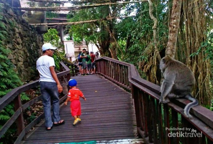 Jakarta - Liburan ke Bali tak sekadar pantai. Asyik juga lho wisata ke Monkey Forest Ubud, menikmati suasana hutan dan melihat tingkah monyet-monyet lucu.Udara sejuk begitu terasa saat memasuki Monkey Forest Ubud. Disambut dengan lucunya tingkah monyet yang menggemaskan. Apabila kita membawa makanan, maka monyet-monyet lucu tersebut akan merebutnya.Tak segan pula hewan yang lucu itu bermanja-manja dengan para pengunjung. Tak sedikit reaksi pengunjung yang takut, namun ada pula yang menggendongnya sambil berfoto.Puas bercanda dengan monyet lucu, saatnya berkeliling mengitari hutan. Di sana masih banyak dijumpai monyet lain yang tak kalah lucunya. Kami jumpai beberapa induk monyet yang menggendong dua anaknya sambil menyusui.Kawasan hutan lindung ini sangat populer di kalangan wisatawan yang berkunjung ke Bali. Di dalam hutan terdapat pura yang digunakan untuk sembahyang umat Hindu dan juga kolam suci. Pepohonan yang menjulang tinggi berpadu dengan hijaunya dedaunan serta diiringi dengan gemercik air sungai menjadikan wisata di tempat ini istimewa.Tidak perlu takut apabila diganggu kera yang agresif. Di sana terdapat petugas yang berjaga, apabila pengunjung diganggu oleh kera maka para petugas akan memberikan bantuan dengan sigap.