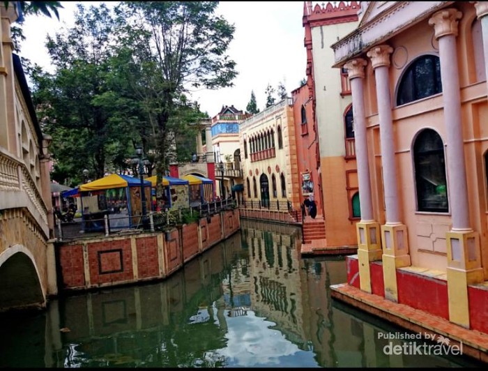 Jakarta - Venesia di Italia terkenal dengan kanal dan bangunan bergaya Eropa. Tak perlu jauh-jauh, di Cianjur ada kembarannya!Venesia yang terkenal dengan sebutan kota air yang unik sepertinya dijadikan inspirasi oleh para arsitektur di kawasan wisata Kota Bunga, Cianjur. Dikenal dengan sebutan 'Little Venice' tempat rekreasi ini dapat dijadikan sebagai destinasi wisata yang tergolong unik.Kota Bunga menyediakan tempat rekreasi dengan mengusung tema seperti di luar negeri. Miniatur kota air yang unik menyerupai Kota Venesia menjadi salah satu lokasi favorit para pengunjung. Keunikan tempat wisata ini dengan meniru Kota Venesia menjadi daya tarik tersendiri.Terdapat jalur transportasi air berupa kanal di antara bangunan-bangunan bergaya Eropa. Kita dapat berkeliling area dengan menyewa kano atau gondola yang tersedia. Persis seperti di Venesia sana!Banyaknya spot foto yang keren yang dapat digunakan untuk kegiatan fotografi. Selain tersedia berbagai wahana permainan air juga tersedia kafe-kafe dan penginapan. Jadi, apabila ingin menikmati suasana liburan yang seru dapat berkunjung dan menginap di sini.