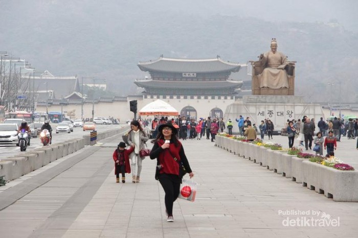 Jakarta - Liburan ke Korea Selatan, tak lengkap tanpa mampir ke Seoul. Di sana ada Gwanghwamun Squre yang legendaris.Perjalanan Korea Selatan beberapa waktu yang lalu masih menyimpan rasa takjub kepada Negeri Ginseng tersebut. Salah satu yang membuat saya merasa demikian adalah Gwanghwamun Square.Rasa takjub akan Gwanghwamun Square bukanlah tanpa alasan. Gwanghwamun Square dibangun oleh Pemerintah Korea Selatan dengan mengurangi enam ruas jalan utama di tengah-tengah Sejong-ro.Kini jalan yang dulunya ramai dengan lalu lalang kendaraan, bising dan berpolusi telah menjadi sebuah area terbuka dan justru menjadi salah satu tempat wisata yang wajib dikunjungi kala jalan-jalan di Korea.Saya bersama pemenang d'Traveler of the year 2016 dan rekan-rekan dari detikTravel berkesempatan mengunjungi Gwanghwamun Square di hari ketiga perjalanan.Saat itu kami masih memiliki cukup banyak waktu usai mengunjungi pusat perbelanjaan, kami pun tidak mau menyiakan kesempatan tersebut untuk jalaN-Jalan santai di Gwanghwamun Square. Dinginnya angin yang berhembus sore itu tidak menghilangkan semangat kami.Gwanghwamun Square memiliki lebar 34 meter dan panjang 557 meter. Banyak sekali orang yang memanfaatkan ruang terbuka ini baik orang Korea itu sendiri maupun wisatawan asing.Ketika kami mengunjungi Gwanghwamun Square, saat itu sedang ada aksi yang dilakukan sejumlah aktivis yang menuntut Pemerintah Korea melakukan pengangkatan bangkai KM Sewol yang tenggelam pada 16 April 2014.Usai melewati posko aksi aktivis KM Sewol, kami terus berjalan ke arah Istana Gyeongbokgung, istana terbesar di Korea Selatan yang pada hari pertama telah kami kunjungi.Karena keterbatasan waktu kami tidak sampai selesai menapaki Gwanghwamun ini, kami sekedar santai menikmati suasana di sekitar Patung Raja Sejong.Kehadiran Gwanghwamun Square benar-benar dimanfaatkan sekali oleh warga Korea. Selain sebagai tempat untuk sekedar jalan-jalan santai, melakukan aksi atau menunjukkan hasil seni dan membagikannya. Seperti yang kami lihat ketika itu, dimana ada beberapa seniman yang sedang melakukan kemahirannya menulis dalam aksara Korea, tulisan tersebut berupa kata-kata mutiara dalam bahasa Korea.Sayang sekali waktu kami harus berakhir, padahal masih banyak yang bisa dilihat di sini seperti Sejong Exhibition Hall yang berada di bawah Patung Raja Sejong yang memuat semua informasi tentang Raja Sejong.