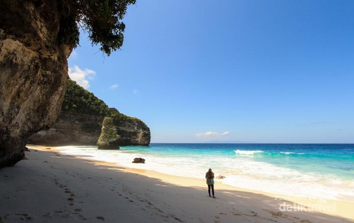 Jakarta - Pantai adalah salah satu tempat yang cocok untuk melarikan diri sejenak. Tersembunyi di Nusa Penida Bali, pantai ini pas untuk kabur dari rutinitas, Suwehan.Seperti dejavu ketika melangkah menuruni bukit nan terjal ini, ya seperti aku sedang menuruni lereng lereng ketika mau turun gunung kalaupun boleh lebih di dramatisir turunannya seperti menuju Segara Anak Gunung Rinjani. Ini serius, sebenarnya aku sedang berada dimana? Ahhh tiba tiba suara ombak memecah lamunanku diantara peluh yang terus mengucur membasahi dahi. Aku tidak berada di gunung saat ini melainkan dalam usaha untuk menggapai Pantai Suwehan.Terletak tersembunyi di bawah tebing tegak lurus di sebelah timur Nusa Penida, untuk menuju Pantai Suwehan membutuhkan sedikit usaha yang lebih. Ya karena memang untuk menggapai surga itu memang tak mudah, Pantai Suwehan memberikan salah satu contoh kecilnya.Pepohonan besar yang tumbuh disepanjang jalur menjadi kanopi teduh untuk menghalangi sinar matahari yang masuk. Cukup asri dan teduh namun suhu panas khas pesisir ditambah jalur menurun yang lumayan cukup ekstrim tetap tak mampu mengahalangi cucuran peluh untuk keluar dari pori pori kulit.Apalagi kami yang seakan tak siap untuk mengahadapi jalur menurun tajam seperti ini. Namanya juga pantai siapa sangka akan terlebih dahulu melalui jalur nan ekstrim seperti ini. Beberapa tentengan tas plastik berisi berbagai jajanan dan bungkusan makan siang yang kami beli di Toyapakeh tadi semakin memperberat langkah turun kami. Di beberapa titik kami harus saling membantu melempar barang bawaan ke bawah sekedar untuk lebih mudah melangkah turun dan tangan lebih leluasa untuk mencari pegangan yang dirasa aman.Aku membawa satu tenteng penuh plastik jajanan, Mbak Okta membawa satu tenteng plastik juga, Lintang pun begitu, namun tidak dengan Fajar dia nampaknya lebih muram dan terkesan syok melihat jalur yang seperti ini, dia hanya terdiam sepanjang perjalanan. Aku biarkan saja dia untuk berjalan dibelakang sembari memotret apapun yang ada dengan kamera yang selalu berada di genggamannya untuk menghilangkan pikiran tentang jalur yang luar biasa di depannya.Setelah hampir 30 menit berjalan hamparan laut pun sudah ada di depan mata. Namun masih ada beberapa meter lagi turunan kebawah dan turunan terakhir ini seakan memberikan ujian yang paling nyata sebelum kaki kami menyentuh pasir pasir putih Pantai Suwehan. Aku yang berjalan paling depan sedikit kebingungan dan mencari cara bagaimana cara paling aman untuk turun."Sini aku bawain dulu tas plastiknya, nanti aku lemparin jika kamu sudah dibawah," kata mbak okta."Oke mbak, perhatikan ya, nanti ikuti caraku untuk turun," sahutkuDengan sedikit merosot aku pun turun dan melalui jalur yang hampir tegak lurus ini. setelah berhasil sampai dibawah, mbak octa pun melempar semua barang bawaannya. Aku pun menjadi navigator untuk langkah langkah dari kawan kawan yang masih ada di atas sana.SSesampainya kaki kaki menyentuh pasir kami pun berlarian seperti burung yang telah lepas dari sangkarnya dan menemukan rumahnya sendiri yang paling indah. Pasir pasir disini begitu halus dan putih bersih, tanpa sampah sedikitpun. Dinding terjal sebelah kiri bak benteng raksasa yang melindungi Pantai Suwehan ini dari kehidupan luar. Tepat di bibir pantai ada sebuah batu meruncing berbentuk layar yang seakan menjadi ikon dari pantai indah ini.Aku pun terduduk di salah satu sudut yang terlindung dari matahari. Meletakkan saemua barang bawaan dan melepas semua lelah, menikmati semua keidahan yang ada di depan mata. Hanya kami yang ada disini, tak ada kelompok lain. Bak surga tersembunyi dan milik pribadi hanya deburan ombak yang memecah kesunyian. Terpaan angin lembut pun menerpa wajah seakan memberikan sambutan bagi kami yang terlalu lama akrab dengan kebisingan kota kota di pulau jawa.Tak perlu menunggu waktu terlalu lama, satu persatu dari kami pun riuh kesana kemari untuk mengambil beberapa pose foto berlatar birunya laut dan tebing yang berdiri dengan megahnya. Si Fajar kini tersenyum lebar, wajah muramnya telah sirna, dia berlari lari kecil mencari beberapa spot foto yang dianggapnya menarik. Pantai Suwehan memberikan kado terindah untuk kami yang telah berhasil turun untuk menggapainya.Kami nikmati semua sajian alam yang ada di Pantai Suwehan ini. Sepuasnya, karena perjalanan berat akan menanti sekembalinya kami beranjak pulang.Karena jalur masih tetap melewati jalur turun yang tadi. Entahlah bagaimana cerita nanti, yang terpenting saat ini kami bahagia menikmati surga tersembunyi bernama Pantai Suwehan.