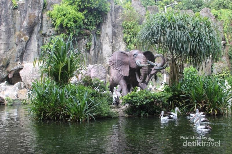 Ngabuburit di Ragunan, Kenapa Tidak? BAGIKAN URL telah disalin Patung gajah dan sekawanan burung pelikan akan menyambut kita di depan pintu masuk Mengamati burung kakatua yang lucu Salah satu taman yang ada di dalam kebun binatang, lengkap dengan kolamnya Suasana yang asri dan bersih Pohon-pohon besar menaungi taman-taman