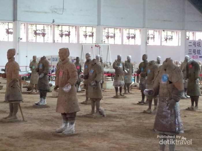 Jakarta - Liburan ke Kota Xian di China, kamu bisa menjumpai ribuan patung terracota penjaga makam kaisar. Patung ini dibuat dengan sangat detail dan bikin kagum.Apa sih uniknya kota Xian? Bagi dtraveler yang ingin berkunjung ke Kota Xian yang berjarak 1.500 Km dari Kota Shanghai ini, jangan lupa bahwa dulu kota xian merupakan ibukota pertama China. Dibangun sebelum abad ke-2 Masehi, kota ini didiami oleh 4 dinasti yaitu dinasti Zhou, Han, Qin dan Tang hingga abad ke 12.Kemudian setelah dinasti Ming berdiri, ibu kota negara pindah ke Beijing. Dari kota Xian inilah perjalanan sejarah yang mengubah dunia terjadi yaitu Silk Road-jalur sutra, sebuah jalur perdagangan terpanjang dan terumit di dunia antar benua.Xian merupakan kota satelit di zamannya dan dikunjungi oleh beragam suku bangsa. Tidak aneh apabila kota ini menjadi rebutan bahkan oleh Jengis Khan sekalipun. Tujuan wisata utama dari kota ini yaitu menyaksikan salah satu tujuh keajaiban dunia yaitu pasukan terracota. Ada 8.099 pasukan dan kuda yang terbuat dari tanah liat untuk menjaga makam sang kaisar-Qin Shi Huang.Dibangun pada tahun 210 Masehi, proyek makam ini membutuhkan 700.000 pekerja untuk membuat 8.099 patung tanah liat beserta kuda dan karena kondisi alam serta gempa bumi hebat, artefak sejarah ini terkubur dan baru ditemukan oleh seorang petani ditahun 1974.Hingga saat ini pengerjaan penggalian serta restorasi masih dilakukan. Bayangkan untuk memperbaiki 8.099 patung tanah liat yang beberapa di antaranya sudah hancur akibat dimakan waktu. Tentu dibutuhkan waktu dan biaya yang besar.Tidak aneh apabila tiket masuk menuju lokasi museum ini dipatok seharga 150 Yuan. Buka dari pukul 08.30-18.00 waktu setempat, dan untuk transportasi bisa menggunakan free shuttle bus dari Xian North Railway.Tapi untuk lebih praktis dengan group bisa sewa van seharga 300 Yuan PP serta sharing, tentu lebih murah buat transportasi. Ada 4 pemberhentian museum dan masing-masing dengan luasan yang berbeda. Setiap pit memiliki keunikan tersendiri, yang paling luas yaitu pit 2 yang dilengkapi dengan pasukan berkuda.Setiap wajah pasukan dibuat berbeda-beda dan menggunakan baju, beberapa diantaranya dihiasi baju jirah perang serta pedang dari besi. Bahkan ditemukan kuda berlapis emas serta perak dan tembaga. Decak kagum tiada henti bagaimana jaman dulu saja sudah secanggih ini. Setiap detail dan raut wajah selalu berbeda sesuai jabatan, bahkan ini dilakukan hanya untuk menjaga Sang Kaisar.