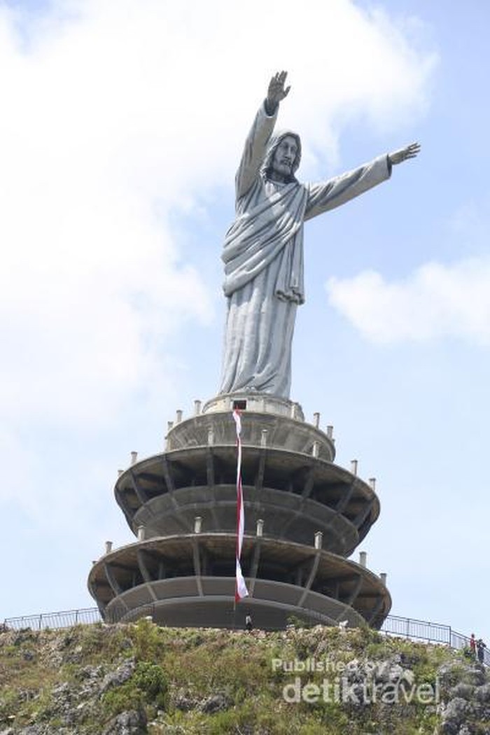 Jakarta - Brasil identik dengan patung Cristo Redentor yang berdiri megah. Tapi tidak kalah dengan Negeri Samba, Toraja juga punya patung Yesus berukuran raksasa.Untuk melihat patung Yesus, traveler tidak perlu jauh-jauh pergi ke Brazil. Indonesia punya Patung Yesus Raksasa yang merupakan ikon dari kota Makale Tana Toraja. Patung yang diresmikan pada tahun 2015 ini konon diklaim sebagai yang tertinggi di dunia, bahkan mengalahkan patung yang ada di Rio de Jeneiro, Brasil yang sudah lebih dulu terkenal.Patung ini terletak di sebuah bukit bernama Puncak Buntu Burake, Makale Tana Toraja. Untuk mencapai lokasi ini, saya menempuh perjalanan darat 7 jam dari Makasar menuju Toraja. Jika menyebut nama Toraja, hampir seluruh dunia mengenalnya. Tana Toraja dengan bangunan rumahnya yang begitu ikonik dan tradisi maβnene yang sudah amat dikenal dunia, menjadikan Toraja sebagai tujuan lokasi wisata idaman traveler.Dari kota Toraja, untuk sampai ke Bukit Burake hanya membutuhkan waktu sekitar 30 menit. Jalan menuju lokasi tidak terlalu lebar, dan belum mulus seperti jalan raya pada umumnya. Dari alun-alun Makale, patung ini sebenarnya sudah terlihat. Tapi untuk melihat lebih detil saya langsungΒ datang ke lokasi. Dengan tempat parkir yang relatif sederhana, dan suhu panas di siang hari adalah kesan pertama sampai di tempat ini. Menaiki ratusan anak tangga sayaΒ sampai di Puncak Burake.Tinggi patung Yesus ini setinggi 40 meter. Dari atas puncak kita juga bisa melihat kota Tana Toraja dengan rumah adatnya yang sangat khas. Walaupun tempat ini merupakan wisata religi kawan-kawan nasrani, namun banyak juga wisatawan yang datang ke sini hanya untuk selfie atau mengabadikan momen keindahan Tana Toraja dari puncak. Jadi bagi traveler yang mau melihat patung Yesus, datang saja ke Tana TorajaΒ Β
