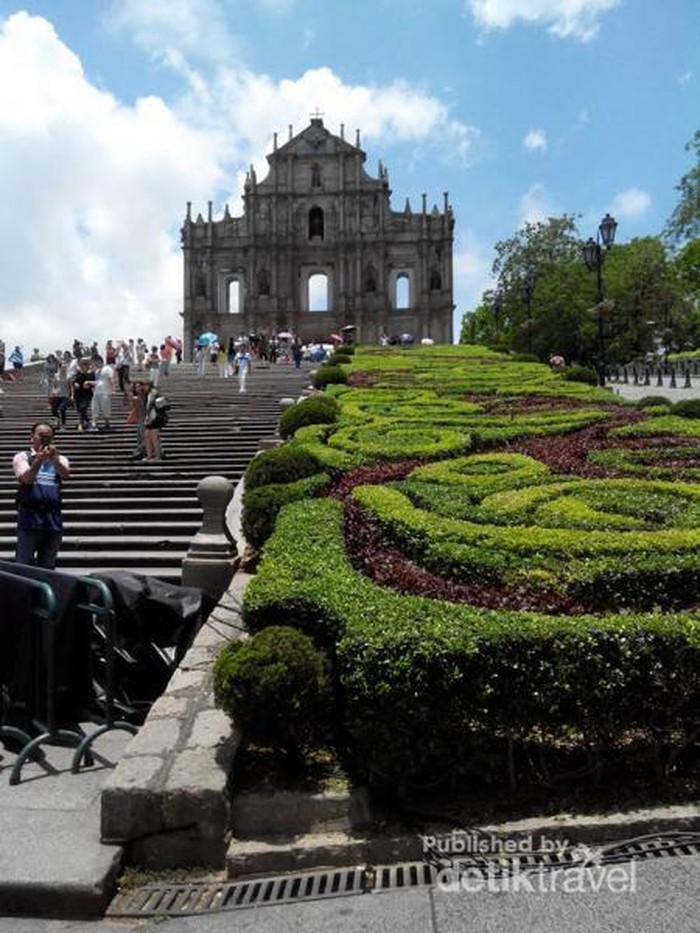 Jakarta - Reruntuhan gereja di Macau yang satu ini seringkali muncul dalam foto liburan traveler. Itu merupakan reruntuhan Gereja St Paul yang dibangun ratusan tahun lalu.Gereja St Paul ini dibangun pada tahun 1582-1602 dan merupakan gereja katolik terbesar se-Asia pada masa itu. Kejayaannya lenyap setelah sebuah kebakaran besar yang terjadi melahap hampir sebagian besar bangunannya, yang tersisa hanya bagian depannya. Reruntuhannya inilah yang sudah terdaftar sebagai UNESCO World Heritage Site sejak tahun 2005.Di muka sisa bangunan ini banyak terdapat relief dan ukiran yang berkisah tentang agama Katolik dan juga percampuran kebudayaan antara China dengan Portugis. Di depannya ada puluhan anak tangga yang mengarah ke bangunan-bangunan lain di bawahnya. Di sebelah kanan dari bangunan ini terdapat kebun yang tanamannya di tata dengan sangat rapi, membentuk suatu pola.Bagi wisatawan yang penasaran, bagian belakang dari reruntuhan ini bisa dijelajahi dengan menaiki tangga yang digunakan sebagai penopang. Jangan takut karena tangga ini sangat kokoh. Jangan lupa lempar koin ke arah lubang jendela yang ada di tingkat dua ya. Konon bisa untuk keberuntungan.Banyak sekali wisatawan yang berkunjung ke sini karena Reruntuhan Gereja St Paul ini merupakan destinasi wajib jika berkunjung ke Makau. Selain itu, bagi Anda pecinta fotografi jangan lewatkan lawatan anda ke situs bersejarah ini.Di depan runtuhan St Paul ini juga terdapat banyak pertokoan dan spot foto lainnya. Jangan lewatkan membeli kuliner khas Makau ya, Egg Tart!