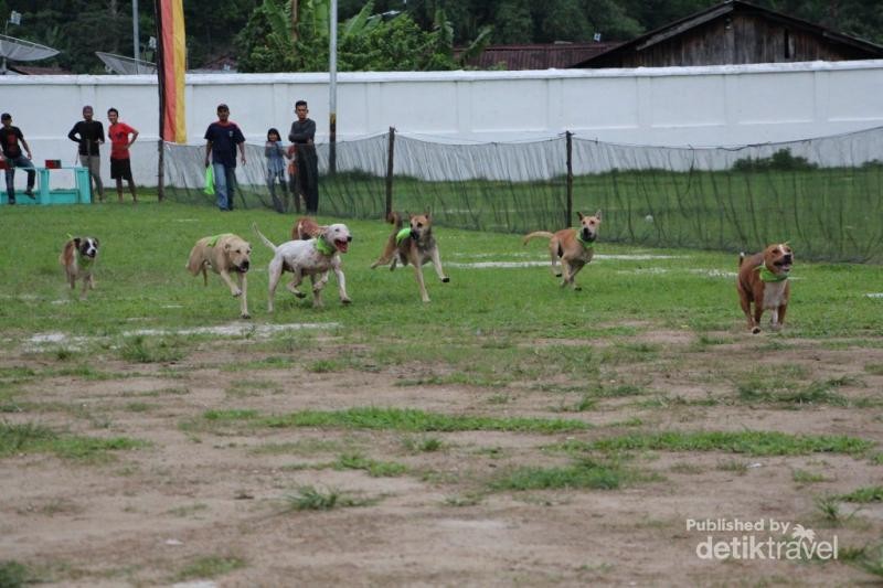 Yang Seru di Sawahlunto, Lomba Pacu Anjing BAGIKAN URL telah disalin Anjing - anjing berpacu menjadi yang tercepat Lomba Pacu Anjing dalam rangka HUT Kota Sawahlunto ke 127 Pemilik dan anjing di garis start Joki dan babi kecil dibawa ke tengah lapangan Setelah sampai garis finish