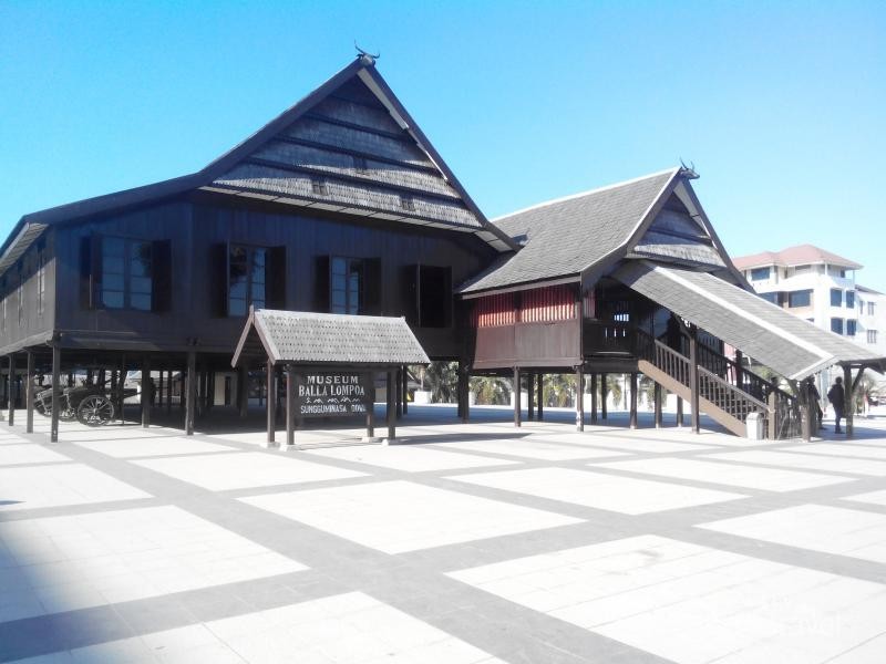 Telusur Sisa Kejayaan Kerajaan Gowa di Makassar BAGIKAN URL telah disalin Museum Balla Lompoa dari sudut sisi kiri Museum Balla lompoa tampak depan Istana Tamalate Tugu di depan Museum Balla lompoa Tiang - tiang kokoh penopang bangunan istana Tamalate