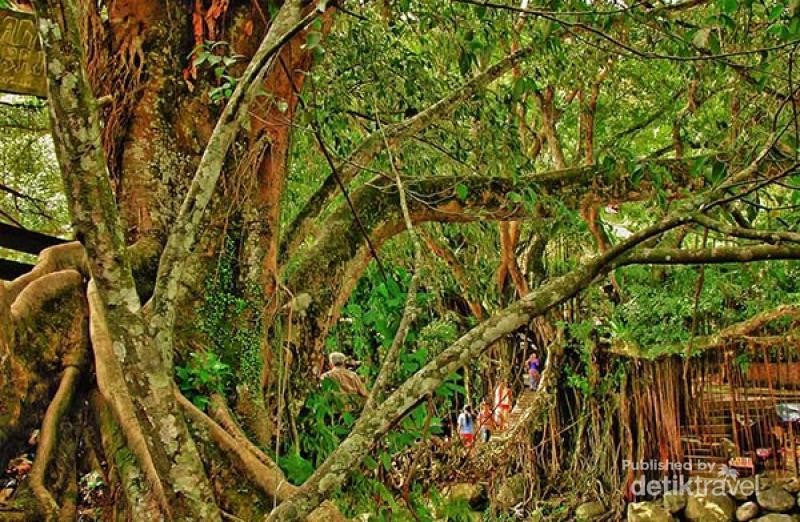 Jembatan Akar Berumur 100 Tahun di Sumbar BAGIKAN URL telah disalin Jembatan Akar di antara dua pepohonan lebat Melintas 10 meter di atas Sungai Bayang Jembatan Akar sepanjang 25 meter Kerap dilalui warga Mencoba sensasi melewati Jembatan Akar