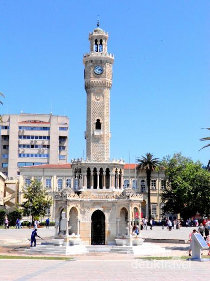 Jakarta - Kalau London di Inggris punya Big Ben, Izmir di Turki punya Izmir Clock Tower. Menara jam itu tampak begitu indah dengan pancuran di bagian bawahnya. Area menara ini pun seringkali menjadi tempat nongkrong di Izmir.Butuh waktu perjalanan darat sekitar 3 jam dengan bus untuk menuju ke Kota Izmir. Izmir adalah kota bisnis ke-3 terbesar di Turki dan terkenal dengan pabrik penyamakan kulit serta kilang minyak.Kota tepi laut ini dibagi menjadi dua area, yaitu kota tua dan modern. Kota tua Izmir terletak di pinggir tebing dan yang modern berada di tepi pantai. Kota ini juga dihuni oleh beragam suku bangsa dan agama.Konon sultan era Ottoman memberikan tanah bagi para pengungsi Yahudi ketika bangsa mereka diusir dari Cordoba di Spanyol. Kerajaan Ottoman memberikan tanah bagi para pengungsi Yahudi tersebut dan menetap hingga kini.Penanda Kota izmir yaitu Sahat Kula dalam bahasa Turki yaitu jam Kota Izmir. Menara jam tersebut dibuat pada tahun 1901 sebagai hadiah dari kerajaan Jerman untuk kesultanan Turki. Menara mempunyai ketinggian 25 meter dengan air mancur di sekitarnya, sementara ornamen jam tersebut memang dirancang dengan desain khas Turki.Di sore hari, kawasan tersebut dijadikan tempat berkumpul para warga Izmir. Pemandangannya sangat cantik di sore hari. Traveler bisa bersantai sambil menikmati tepi pantai yang bersih.