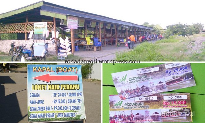 Jakarta - Akhir-akhir ini wisata mangrove sedang ramai didatangi wisatawan di Jakarta. Eits jangan salah, Surabaya juga punya yang sejenis, tak kalah eksis dengan yang di Jakarta. Ekowisata Mangrove Wonorejo sudah ada sejak beberapa tahun yang lalu. Untuk menuju ke sana, acuannya dari Jembatan MERR IIC kearah STIKOM jalan menyusuri pinggir sungai hingga menemukan perumahan Green Semanggi. Dari sana belok kanan sekitar 200 m dan belok kiri mengikuti jalan yang ada hingga menemukan tempat parkir di kiri jalan.Semua kendaraan harus parkir di sana kecuali karyawan. Dahulu waktu masih sepi, parkir bisa di depan dermaga. Tetapi karena sekarang ekowisata semakin ramai dikunjungi, tempat parkir pun tidak mencukupi dan dipindah. Untuk karcis masuk biayanya Rp 2.000 untuk motor dan Rp 3.000 untuk mobil.Untuk menuju dermaga disediakan jembatan dari kayu di tengah hutan bakau kira-kira 100 meter. Di ujung jembatan terdapat sentra makanan yang menjual berbagai minuman dan cemilan, ada juga beberapa warung yang menjual berbagai menu nasi. Tepat di tengah deretan bangunan itulah dermaga ekowisata berada.Ada 2 opsi yang bisa dipilih, pertama hanya jalan-jalan di sekitar dermaga. Terdapat jogging track di sisi paling ujung dari bangunan dermaga, kita bisa jalan di jembatan kayu menyusuri sepanjang tepi pantai hutan mangrove.Sebelum memasuki jogging track kita akan disambut oleh beberapa ekor kera yang diikat di pohon. Mungkin untuk menyambut tamu yang datang. Jogging track yang ada cukup panjang dengan pemandangan khas hutan mangrove.Sayangnya saya tidak sampai ujung karena setelah berjalan 250 m, saya putuskan untuk kembali. Untuk masuk ke jogging track cukup membayar Rp 2.000 per orang. Tetapi saat saya membayar tidak diberi karcis, apakah memang seperti itu? Entahlah.Opsi kedua adalah naik perahu dan jalan-jalan di gazebo yang ada di muara sungai. Untuk naik perahu kita harus bayar Rp 25.000 per orang dewasa dan Rp 15.000 untuk anak-anak. Bisa juga menyewa speedboat private dengan harga Rp 300.000 untuk 6 orang. Setahu saya, speedboat juga bisa untuk pre-wedding.Biasanya perahu menunggu hingga penuh, kira-kira sampai 30 orang baru berangkat ke gazebo. Jarak antara dermaga utama dengan dermaga gazebo sekitar 15 menit perjalanan.Di sepanjang perjalanan banyak burung blekok. Mereka terbang di antara dahan-dahan mangrove. Kalo petugas perahunya sedang baik hati biasanya diputar dahulu di muara jadi kita bisa melihat Pulau Madura dari sana. Baru kemudian kembali menuju dermaga gazebo yang terbuat dari bambu.Dari dermaga bisa jalan kaki menuju beberapa gazebo yang ada. Toilet tersedia didekat dermaga, bagi yang mau shalat juga sudah disediakan mushola yang terbuat dari bambu.Sepanjang jalan menuju gazebo kita menyusuri jalan panggung setapak yang terbuat dari anyaman bambu, di kiri kanannya adalah hutan mangrove. Gazebo yang tersedia merupakan sumbangan beberapa instansi pemerintahan dan perusahaan.Sebut saja gazebo Polrestabes Surabaya, Korem 084 Bhaskara Jaya dan ada juga gazebo Bhayangkari Jatim dan Pertamina yang terlihat paling besar ukurannya.Setiap gazebo mempunyai pemandangan sendiri-sendiri karena jarak antara satu dengan yang lainya cukup jauh. Yang paling menarik adalah milik Pertamina karena gazebonya bertingkat. Jadi, kita bisa melihat pantai di kejauhan dari atas.Di gazebo kita juga bisa duduk-duduk sambil menikmati semilir angin laut yang nyaman. Kalo sudah bosan bisa pindah ke gazebo lain atau kembali ke dermaga gazebo lalu melanjutkan perjalanan ke dermaga utama.Untuk kembali ke dermaga utama, kita harus menunggu kapal jemputan. Jadi setiap kapal yang datang, selain mengantar wisatawan yang baru juga menjemput wisatawan yang hendak pulang. Untuk kembali ke parkiran kita harus melalui jalan sama seperti kita datang tadi.