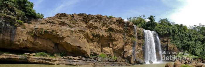 Jakarta - Curug Awang, mungkin banyak yang belum sering mendengar namanya. Namun air terjun ini memiliki pemandangan dan suasana yang segar. Yuk ke sana!Curug Awang adalah salah satu curug dari aliran sungai Ciletuh. Selain Curug ini ada 2 curug lain yaitu curug Puncak Manik dan curug Tengah yang berada satu aliran sungai Ciletuh, ketiga curug ini berada di wilayah desa Taman Jaya, Sukabumi.Dari Jakarta kami mengambil rute Bogor-Cihideung-Cijeruk-Sukabumi-Cikidang-Pelabuhan Ratu-Simpenan-Kiaradua-JampangKulon-Waluran dan berakhir di Tamanjaya. Untuk menuju lokasi curug Awang sendiri, bisa menggunakan mobil biasa (bukan offroad) karena keadaan jalan yang masih cukup bagus.Dari tempat parkir kendaraan, kami mulai jalan kaki di jalanan berbatu yang sedikit menurun lalu dilanjutkan menuju sawah dan harus melewati jembatan batang pohon yang melintas di atas kali kecil. Setelah lewat jembatan mini ini, kami belok ke arah kiri. Tidak jauh dari sini, Curug Awang sudah bisa di lihat dari atas.Ada yang bilang, untuk datang ke sini pas musim hujan, jadi curugnya akan terlihat seperti Niagara mini. Airnya akan turun dari semua sisi tebing dengan tinggi 40 Meter dan lebar 60 meter. Buat saya, justru uniknya air terjun ini ya saat kemarau tiba. Karena terliihat hanya ada 2 air terjun nyempil di pojok kanan berhimpitan dengan barisan tebing warna merah di sebelah kirinya.Sampai di pelataran Curug Awang (kurang lebih memakan waktu 15 menit), kami cuma bisa bilang, keren banget! Biarpun airnya berwarna coklat ala kopi susu karena pengaruh batu dan tanah di wilayah sana memang berwarna merah jadi berimbas ke air sungai yang warnanya jadi coklat kemerahan, tidak mengurangi indahnya air terjun ini.Justru karena warna-warna inilah yang membuat Curug Awang berbeda dari yang lain, warna biru langit, hijau pepohonan, tebing merah dan air terjun warna coklat, menjadi perpaduan warna yang unik untuk disaksikan. Mantap!