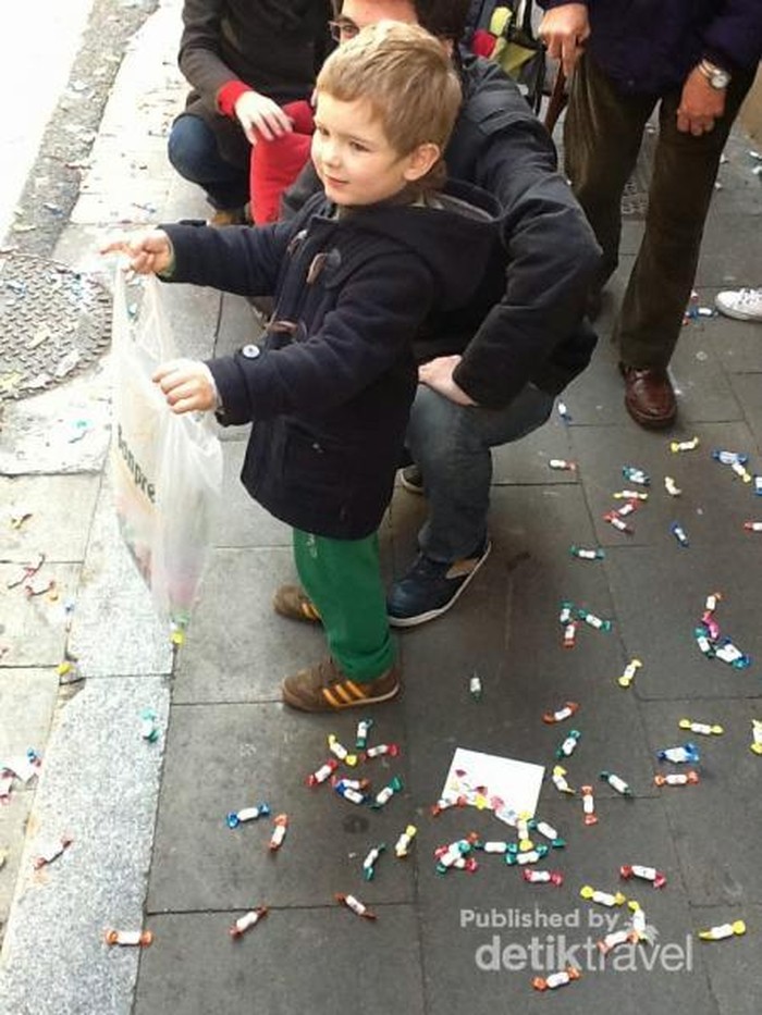Jakarta - Saat mulai semi tiba di Gracia, Barcelona, terjadi hujan lokal. Bukan air yang jatuh ke bumi, tapi permen! Ratusan orang dan anak-anak kecil, menyiapkan payung untuk mendapatkan permen sebanyak-banyaknya. Penasaran?Festival hujan permen ini adalah Fiesta (Pesta) yang memperingati Sant Medir. Khususnya di daerah Gracia, Barcelona, pawai kendaraan terbuka, kereta kuda, parade drumband, dan kembang api meramaikan rangkaian hujan permen ini.Berpusat di Jalan Gran de Gracia, ratusan anak - anak dan orang tuanya telah bersiap dengan payung, tas kresek besar, dan benda lain yang sekiranya bisa menampung permen.Jangan disangka hujan permen ini terjadi karena alam. Hujan permen ini terjadi karena ada puluhan orang yang melemparkan permen dari belasan truk yang berpawai pada Fiesta Sant Medir ini. Seru sekali!Berbeda dengan La Tomatina Festival, dimana penonton adalah korban dari "serangan" pelempar tomat dari atas truk. Pada fiesta ini, para pelempar tidak serta merta melemparkan permen kepada masyarakat yang menonton.Acara dimulai dari halaman kantor camat. Diawali dengan alunan musik drum dan perkusi, kemudian ada castalles (menara manusia), serbuan kembang api, dan petasan dari para pemuda. Acara dilanjutkan dengan pawai kendaraan hias dan bagi - bagi permen di lingkungan Gracia.Ayo, kapan lagi merasakan menggunakan payung untuk berlindung dari serbuan hujan permen?