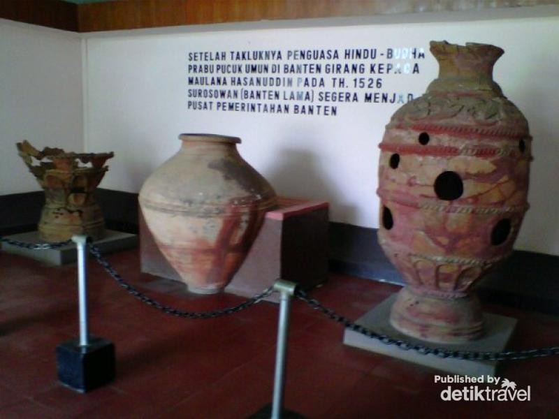 Cikal Bakal Banten Ada di Museum Kepurbakalaan Banten Lama BAGIKAN URL telah disalin Guci Antik Pintu masuk Sebuah bekas meriam di depan museum Batu-batuan Lukisan gambaran Kerajaan Banten