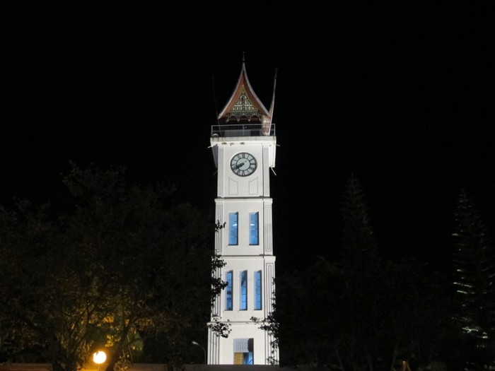 Jakarta - Jam Gadang merupakan objek wisata favorit di Bukittinggi, Sumatera Barat. Jam ini menjulang setinggi 26 meter yang akan membuat siapa pun betah memandanginya berlama-lama. Hati Anda pasti terpikat saat melihat Jam Gadang.Terletak di pusat Bukittinggi, tidak sulit untuk menemukan Jam Gadang. Anda bisa menaiki angkutan umum, taksi, hingga kendaraan khas setempat yaitu Bendi untuk menuju tempat tersebut.Jam Gadang dibangun pada tahun 1826 sebagai hadiah dari Ratu Belanda kepada Sekretaris Kota Bukittinggi saat itu, Rook Maker. Uniknya, jika dulu atapnya menggunakan patung ayam jantan, kini atapnya runcing menjulang khas atap rumah orang Minang.Saat melihat dari dekat, dijamin hati Anda akan terpikat. Dengan warna putih yang bersih, jam ini menjadi kebanggaan masyarakat Minangkabau. Ada banyak bangku taman di sekitar jam ini. Anda bisa duduk sambil menikmati dinginnya udara Bukittinggi.Suasananya tak akan bisa tergantikan. Dinginnya udara Bukittinggi menambah nuansa nyaman. Tak hanya memandang, Anda dapat berpose sepuasnya dengan latar belakang jam ini.Mengitari area sekitarnya, Anda akan menemukan banyak penjual souvenir seperti baju dan aksesori. Lapar? Jangan kuatir, aneka kuliner khas Minang seperti nasi kapau hingga teh telor pinang menjadi sajian khas yang nikmat.Tak hanya Jam Gadang saja, pemandangan di sekitarnya akan membuat Anda takjub. Anda dapat melihat Bukittinggi dari ketinggian. Pada malam hari, cahaya lampunya bagaikan lilin kecil yang menawan.Saat berkunjung ke Bukittinggi akhir pekan ini, mampirlah ke Jam Gadang. Jam besar ini akan memesona Anda dan memberikan pengalaman yang berkesan. Baik siang maupun malam, Jam Gadang akan membuat Anda jatuh cinta!