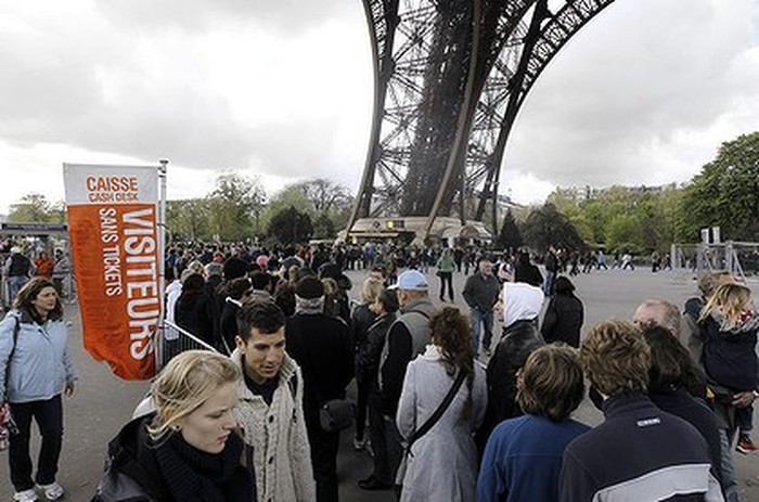 Jakarta - Para turis yang ingin naik ke Menara Eiffel di Paris, Prancis harus membekali diri dengan kesabaran ekstra. Soalnya, 2 dari 3 lift yang tersedia di menara ini mati alias tidak bisa berfungsi.Dilansir dari Sidney Morning Herald, Jumat (13/4/2012), antrian wisatawan yang ingin naik ke Menara Eiffel terlihat dua kali lebih panjang dari biasanya. Bagaimana tidak, lift yang berfungsi hanya satu!Beberapa waktu lalu, salah satu lift Menara Eiffel tiba-tiba terjatuh saat sedang diadakan inspeksi berkala. Untungnya, tidak ada korban dalam insiden itu karena lift sedang kosong. Sedangkan satu lift lainnya, memang sudah tak berfungsi selama 2 tahun terakhir.Alhasil, para turis pun mau tidak mau harus menunggu setengah jam lebih lama dibanding hari-hari sebelumnya.Seorang wanita berumur 64 tahun bernama Bertha mengaku kecewa dengan kejadian ini. Tadinya, wanita yang tinggal di Paris ini ingin mengajak cucunya yang berumur 9 tahun untuk naik ke atas menara. Namun kenyataan berkata lain, alih-alih naik ke menara, Bertha malah harus menunggu selama 2 jam. Cuaca yang jelek semakin memperburuk keadaan. Walau begitu, tak semua turis kecewa akan hal ini. Memang ada yang menyerah dan keluar dari antrean, tapi ada juga yang setia menunggu sambil ngobrol dengan sesama pengantre. Seorang turis bernama Bourdon mengaku asyik mengobrol dengan orang di depan dan belakangnya selama menunggu giliran naik.Direktur Manager Menara Eiffel, Nicholas Lefebre mengatakan bahwa inspeksi akan selesai pada akhir April 2012. Namun, bisa jadi lebih lama jika ternyata harus diadakan renovasi. Setiap harinya, ikon Kota Paris ini kedatangan sekitar 2.000 pengunjung dan angka tersebut naik 25% kali lipat saat musim liburan.