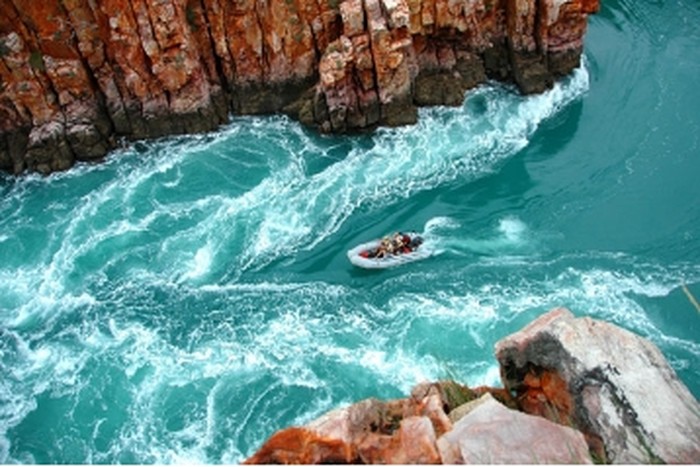Jakarta - Air terjun identik dengan air yang meluncur ke bawah dari tempat yang tinggi. Di Talbot Bay, Australia Barat, terdapat sebuah air terjun yang meluncur horizontal. Penasaran?Talbot Bay di wilayah Kimberley, Australia barat memiliki fenomena unik. Di sini ada air terjun namun horizontal. Air terjun ini jarak yang tidak terlalu tinggi, hanya berkisar 1 meter.Sebenarnya, aliran air ini tidak bisa dibilang Sebagai air terjun, karena memiliki ketinggian yang sangat rendah. Namun tempat ini lebih dikenal dengan nama Horizontal Falls atau air terjun horizontal. Horizontal Falls memiliki nama lain yaitu Horriez, biasa disebut demikian oleh orang lokal.Air di kawasan ini berasal dari Poulton Creek dan Kepulauan Buccaneer. Alih-alih seperti air terjun, ini malah lebih terlihat seperti gelombang. Gelombang ini terjadi karena adanya penyempitan di ngarai. Gelombang di sini tingginya bisa mencapai 10 meter.Ada dua penyempitan yang disebabkan adanya ngarai, yaitu ngarai bagian dalam dan ngarai bagian luar. Ngarai bagian dalam memiliki lebar celah yang menjadi jalur air selebar 12 meter. Sedangkan ngarai bagian luar, langsung menuju lautan memiliki celah selebar 20 meter. Fenomena alam yang bisa dibilang unik ini menarik minat wisatawan. Airnya yang bersih membuat banyak turis sengaja datang untuk menikmati air dari atas perahu. Bagi para anak muda yang suka tantangan, di sini juga bisa menjadi tempat rafting. Gelombang yang ada di sekitar ngarai mampu memacu adrenalin.Bagi para turis yang ingin memancing, perairan ini juga merupakan tempat yang tepat. Banyak ikan yang hidup di perairan ini, asal mancing tidak terlalu dekat dengan Horizontal Falls. Anda bisa mancing santai sambil menikmati matahari yang cerah dan birunya air di kawasan Horizontal Falls, Australia.