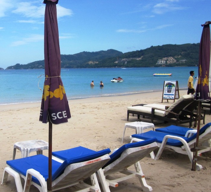 Jakarta - Phuket, mungkin sudah menjadi tempat favorit bagi setiap turis. Salah satu keindahan Phuket adalah pasir putihnya di Pantai Patong. Pasirnya yang sangat putih, akan menggoda Anda untuk berkunjung ke tempat ini. Cerita ini adalah perjalanan saya pada 26 Oktober 2011 lalu. Dengan menggunakan salah satu maskapai Indonesia, akhirnya saya terbang juga ke Negeri Gajah Putih, Thailand. Tujuan kali ini bukan ke Bangkok, melainkan ke Phuket. Phuket adalah Balinya Indonesia, karena di sana kita dimanjakan dengan berbagai macam wisata alam. Banyak persamaan Phuket dengan Bali, salah satunya adalah banyaknya klub-klub malam di sepanjang jalan. Tidak heran banyak turis manca negara memenuhi klub-klub malam ini. Saya mencari hotel yang lokasinya berdekatan dengan pantai, karena tujuan utama saya ke Phuket adalah untuk berwisata alam. Akhirnya saya mendapat hotel di daerah Patong. Ternyata ada pantai yang sangat dekat sekali dengan lokasi hotel saya. Cukup berjalan kira-kira 1 km, Anda akan menemukan pantai di tepi jalan. Pantai yang sangat cantik!Pantai Patong, itulah namanya. Selain kecantikannya yang luar biasa, Anda tidak akan dimintai uang masuk alias gratis masuk ke pantai ini. Kecuali, jika ingin bersantai di kursi panjang lengkap dengan payungnya, maka anda akan dimintai biaya sewa.Sayangnya, saya lupa membawa celana pendek. Alhasil saya terpaksa menggulung celana jeans saya. Tanpa berlama-lama, saya pun mengenakan kacamata hitam dan siap berfoto-foto ria.Β Β Β Β