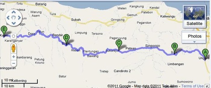 Di tengah persawahan yang semilir ini ku buka lembaran halaman-halaman netbookku, ku sipkan jiwa raga ini untuk menciptakan sebuah sejarah baru bagi diriku, yang akan mengubah seluruh hidupku selamanya. Aku buka internetku, aku ingin melacak awal perjalananku. Oks ... Aku memulainya dengan membuat jalur melalui Google Maps. Aku memulainya dengan Ungaran-Semarang s.d Kajen-Pekalongan.