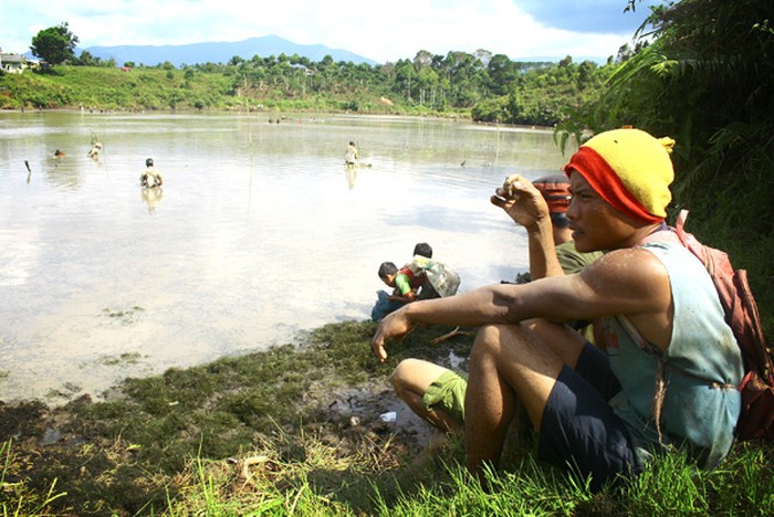 Memang benar, sedang ada warga yang akan mengadakan hajatan, menikahkan anaknya. Oleh karena itu, teban lebar pun dibuka untuk warga dari 4 kampung tersebut. Semua bebas mengambil ikan, biasanya dilakukan selama 2 minggu, hingga airnya surut. Nanti akan dialiri air, dan disebar benih ikan mas kembali oleh si empunya hajat. Hmm, ngomong-ngomong sudahkah kita berbagi kebahagiaan dengan lingkungan kita hari ini?