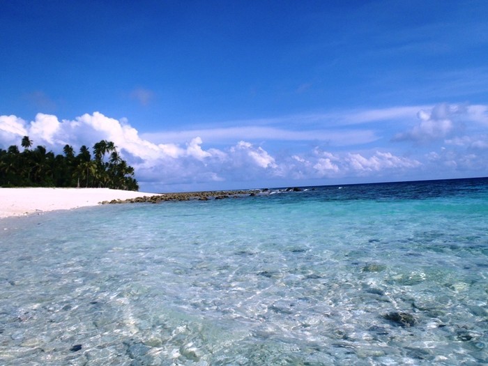 Perjuangan yang cukup besar untuk sampai ke Pulau ini terbayar dengan pemandangan yang mempesona. Belum turun dari kapal, saya sudah disuguhi warna laut yang sangat indah, lautnya berwarna biru-unik, mungkin pantulan pasir putih yang berasal dari dasar laut.