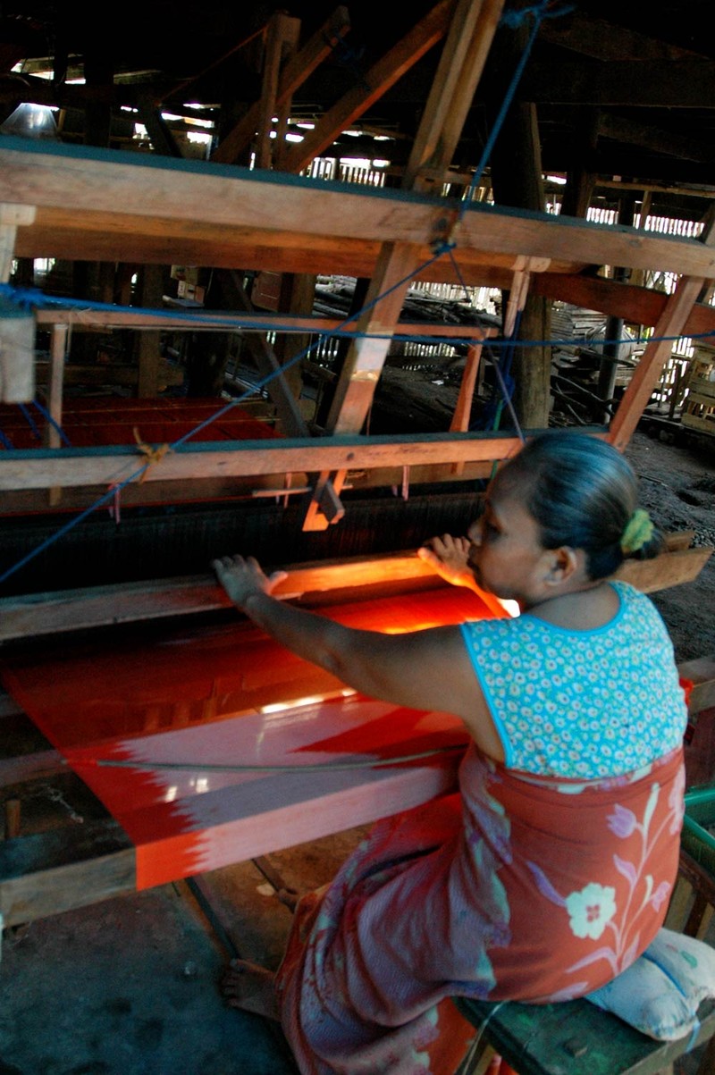3580 Lubang Penguji Kesabaran BAGIKAN URL telah disalin Ibu Megawati tengah menunjukkan cara menenun benang viskos menggunakan Bolu-Bolu 3580 lubang kecil berjajar di tengah-tengah bentangan benang sutra Saunya yang halus si lubang kecil penguji kesabaran Bentangan benang viskos Saunya merah yang diikat benang viskos Pasulunya putih menghasilkan kain tenun ikat khas Sengkang Sehelai kain sutra asli hasil tenun Ibu Megawati Ibu Megawati tengah menunjukkan cara menenun benang viskos menggunakan Bolu-Bolu