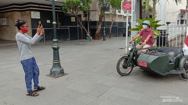 Saya menemukan hal menarik di area Kota Lama Semarang dalam kunjungan bulan November 2021. Ia seorang perempuan mungil dan menawarkan jasa pemandu wisata.