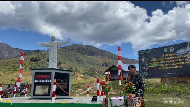 Monumen ini sudah diresmikan Dansatgas Yonif Mekanis 203/AK Letkol Inf Achmad Zaki, Rabu (22/3/2023) ini. Monumen Kasih Karunia menambah daftar karya serupa di Dataran Papua.