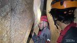Memanjat dinding gua dengan bantuan webbing Foto: detik |
