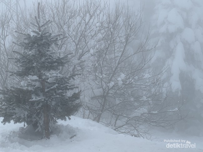 Mulai dari cable car yang goyang akibat tertiup kencangnya angin salju. Terlebih lagi saat itu gunung tertutup kabut yang tebal, sehingga sedikit sulit untuk melihat dan menikmati pemandangan.