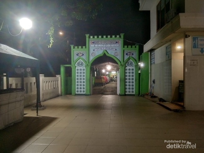 Tulisan "Kramat Habib Ahmad bin Alwi Al Haddad (Habib Kuncung) dan Maqom Keluarga Habib Abdullah bin Ja'far Al Haddad" terlihat jelas di gapura dan langsung menyambut para peziarah.