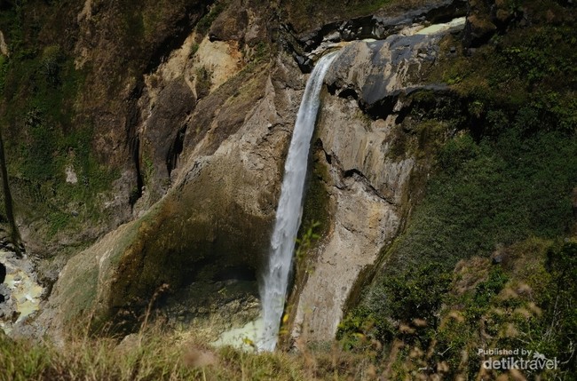 Lanskapnya membuat air terjun ini begitu memesona. Air yang jatuh ke kolam di bawahnya membuat begitu deras sehingga menimbulkan kabut.
