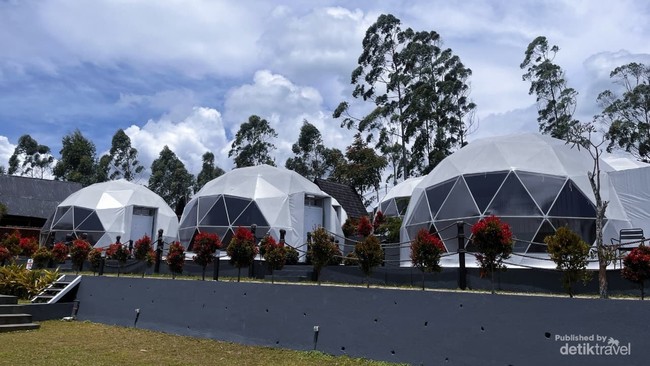 Sesampainya di seberang, suasana romantis itu semakin terasa. Kami disambut dengan deretan dome putih, lengkap dengan kursi santai di area teras yang menghadap langsung ke Situ Cileunca.