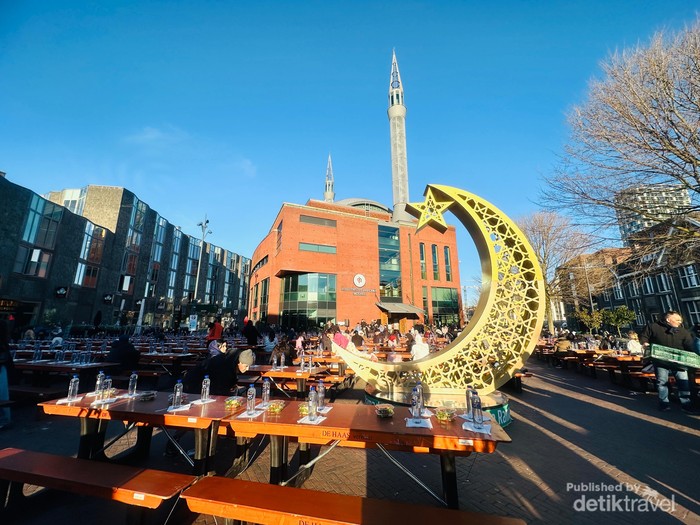 Di pelataran mesjid yang luas inilah dilaksanakan iftar atau buka bersama gratis yang dihadiri oleh muslim dari berbagai latar belakang bangsa dan budaya, bahkan penduduk asli Belanda yang non muslim juga ikut berpartisipasi.