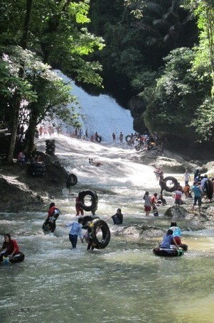 Ada banyak kegiatan yang dilakukan wisatawan saat di air terjun ini, salah satunya adalah berseluncur dengan ban.