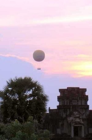 Dengan naik balon udara, Anda bisa memotret komplek Angkor Wat dan melihat sendiri betapa luasnya tempat ini.