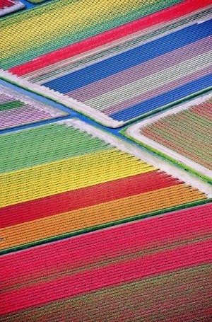 Sejauh mata memandang, barisan bunga tulip seperti permadani warna-warni raksasa. Ada tulip merah, kuning, oranye, ungu, putih, hijau, sampai merah muda ditanam berderet sesuai warnanya.