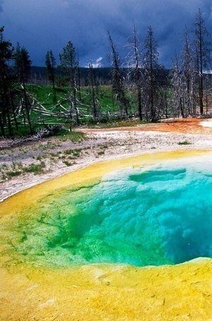 Tapi, coba lihat dulu gradasi warnanya. Ada warna kuning, hijau, dan biru di tengah-tengah danaunya. Air panas yang mengisi danau itu luar biasa jernih. Warna-warni tersebut dihasilkan oleh bakteri yang hidup di Morning Glory Pool.