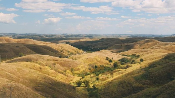 Savana Puru Kambera, salah satu padang savana di Sumba menawarkan panorama eksotis. 'Rinduku pada Sumba adalah rindu padang-padang terbuka. Di mana matahari bagai bola api, cuaca kering dan ternak melenguh...' begitu sepenggal puisi karya Taufiq Ismail pada tahun 1970.