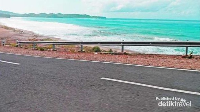 Jakarta - Jalur Pantai Selatan (Pansela) boleh dicoba untuk pemudik yang akan menuju ke Jawa Timur. Pemudik bakal disuguhi pemandangan alam yang indah, salah satunya Pantai Soge di pacitan.