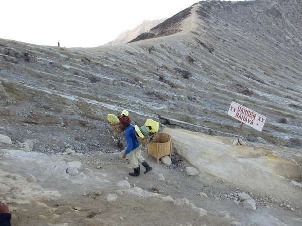Sejak pagi hari, turis sudah bisa melihat bagaimana mereka naik turun kawah untuk membawa belerang. Nantinya, belerang tersebut akan dijual sebagai cara mereka mencari nafkah.